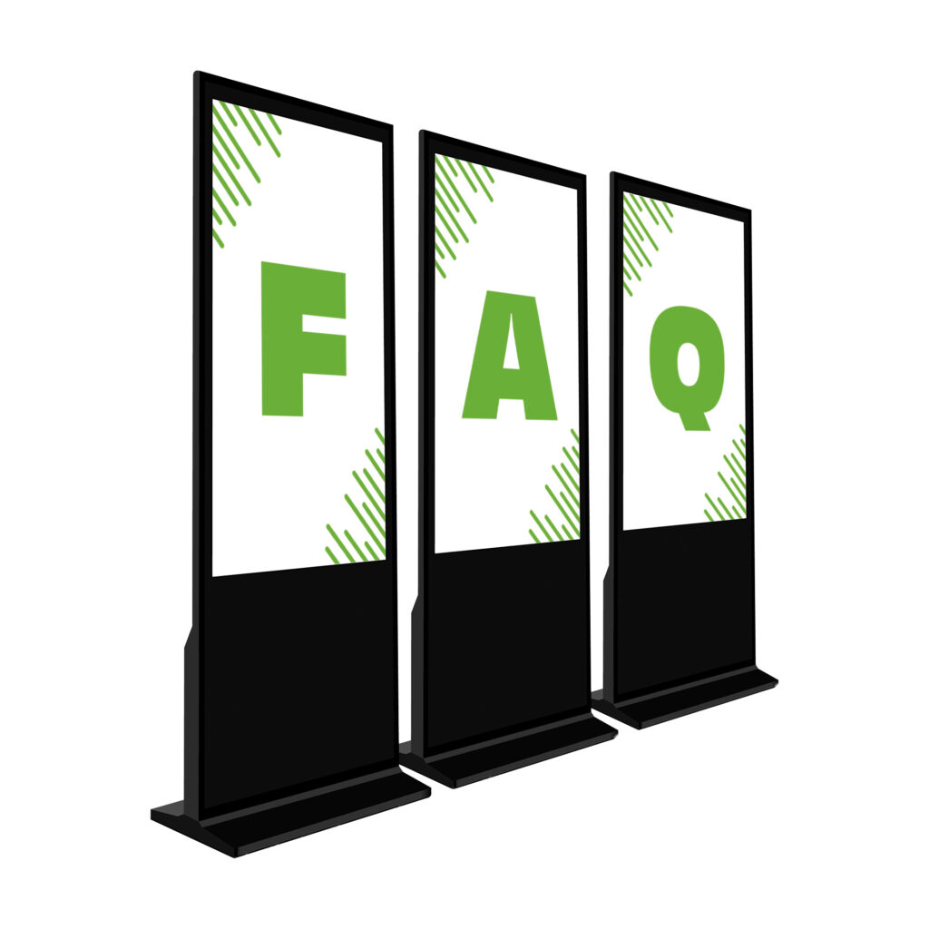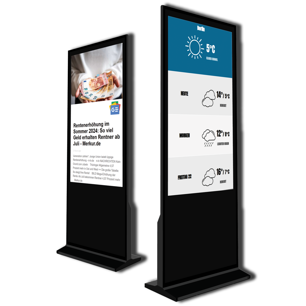 Im Markt sind unsere Bildschirme auf Augenhöhe direkt im Eingangsbereich aufgestellt.